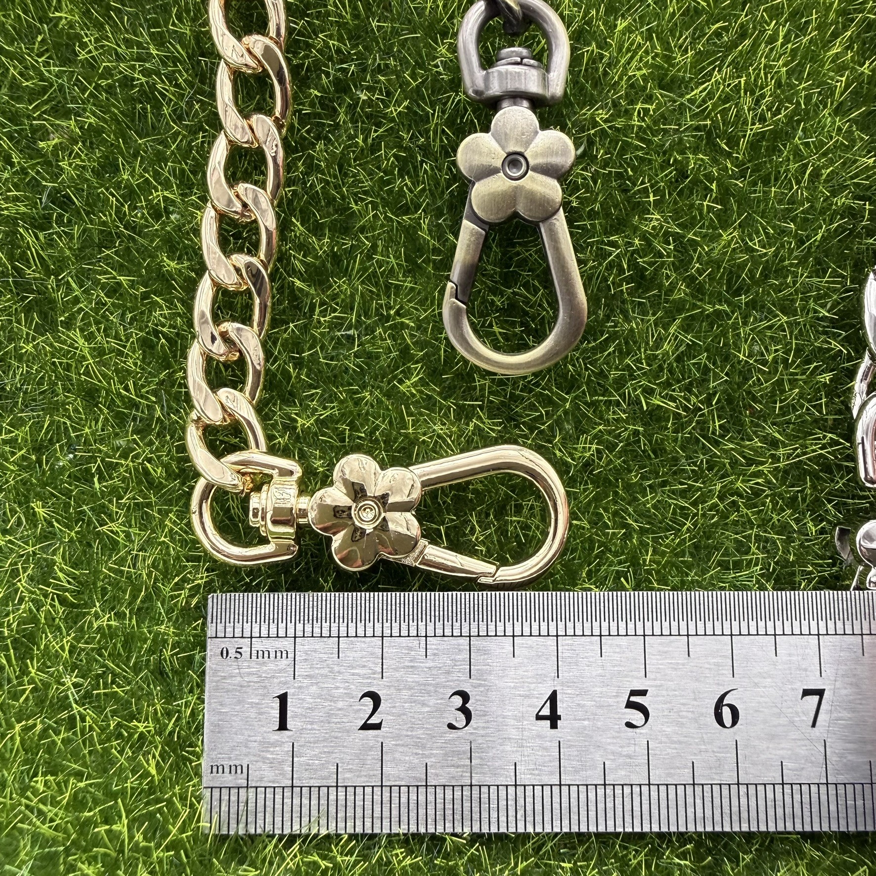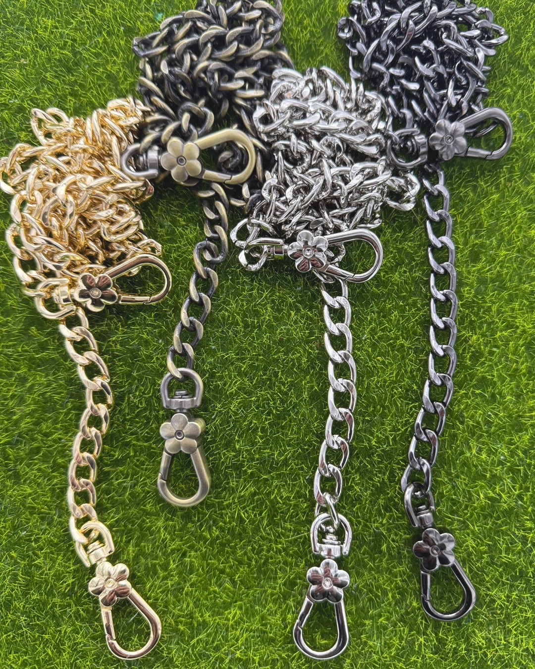Chaîne de sac métallique amovible avec mousquetons fleuris