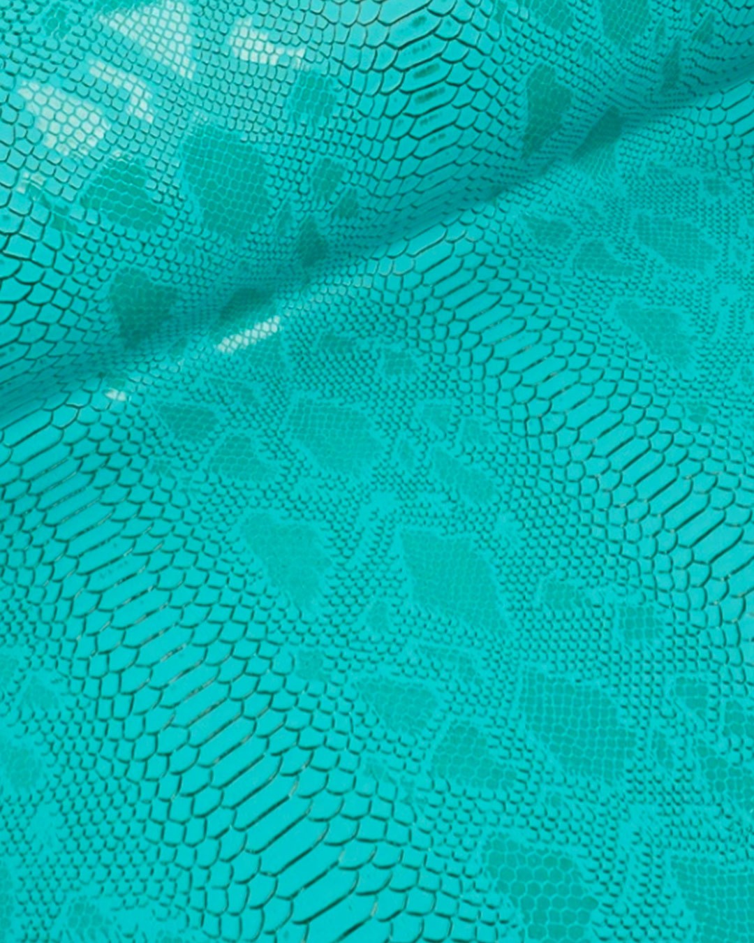 Simili cuir Comodo couleur turquoise, avec un relief imitation peau de reptile.