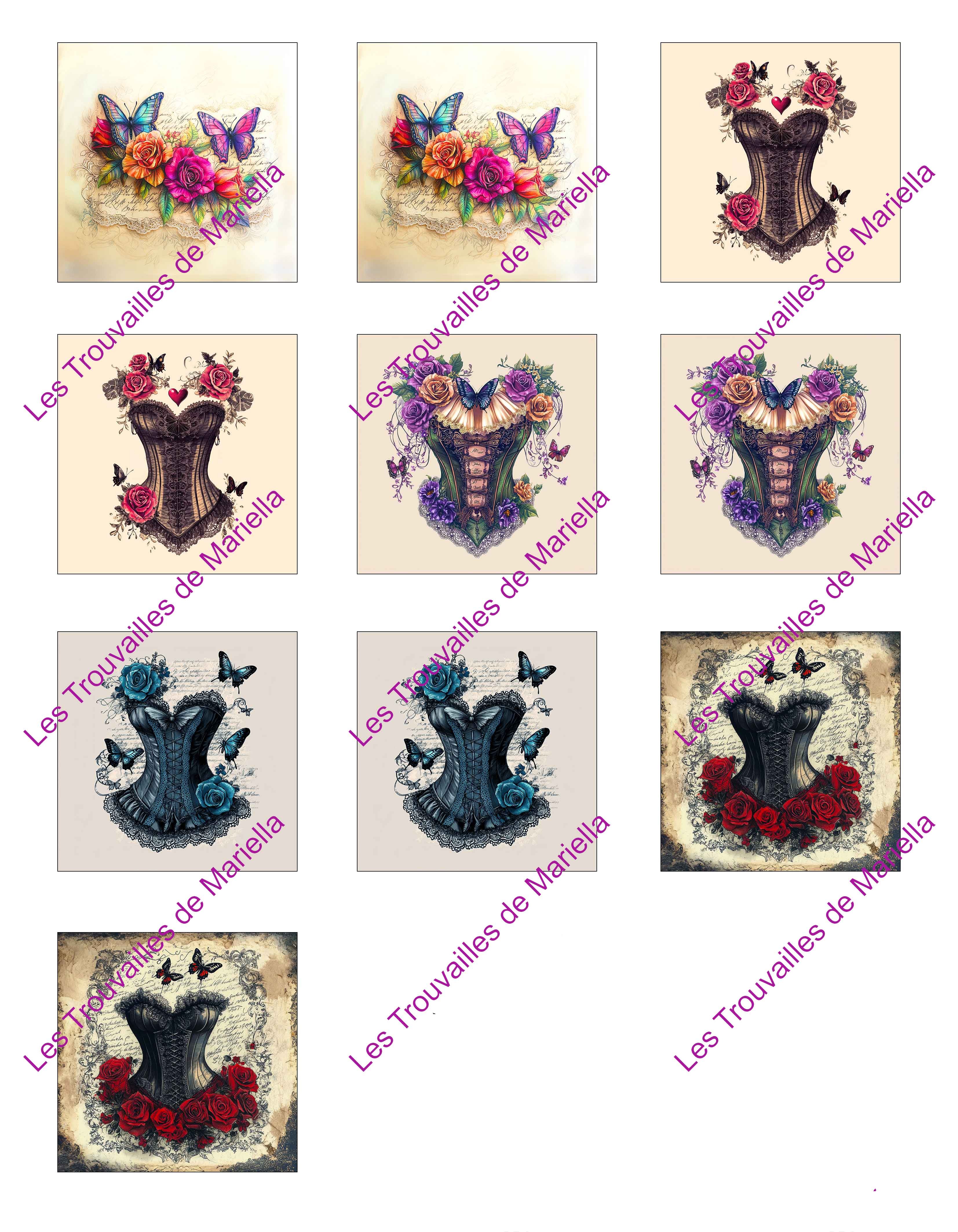 Version achetée: Lingettes Corsets et Papillons (précommande) - COTON - 10 Lingettes Corsets et Papillons 12x12 cm