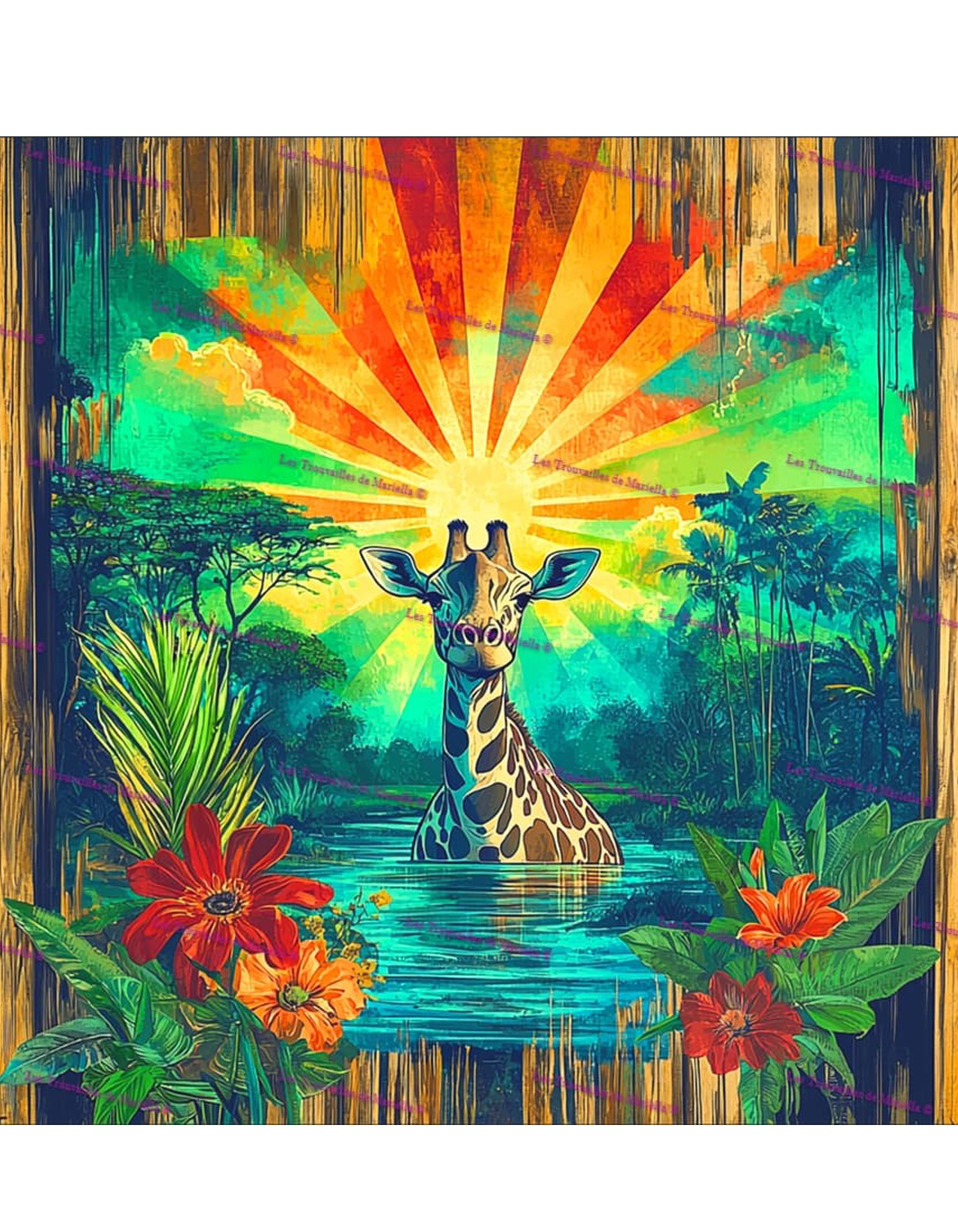Version achetée: X088_Girafe tropicale (précommande) - Simili - 15x15 cm