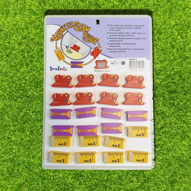 Le guide couture aimanté se fixe directement sur la plaque métallique de ta machine à coudre, et t’aide à garder une couture parfaitement régulière.