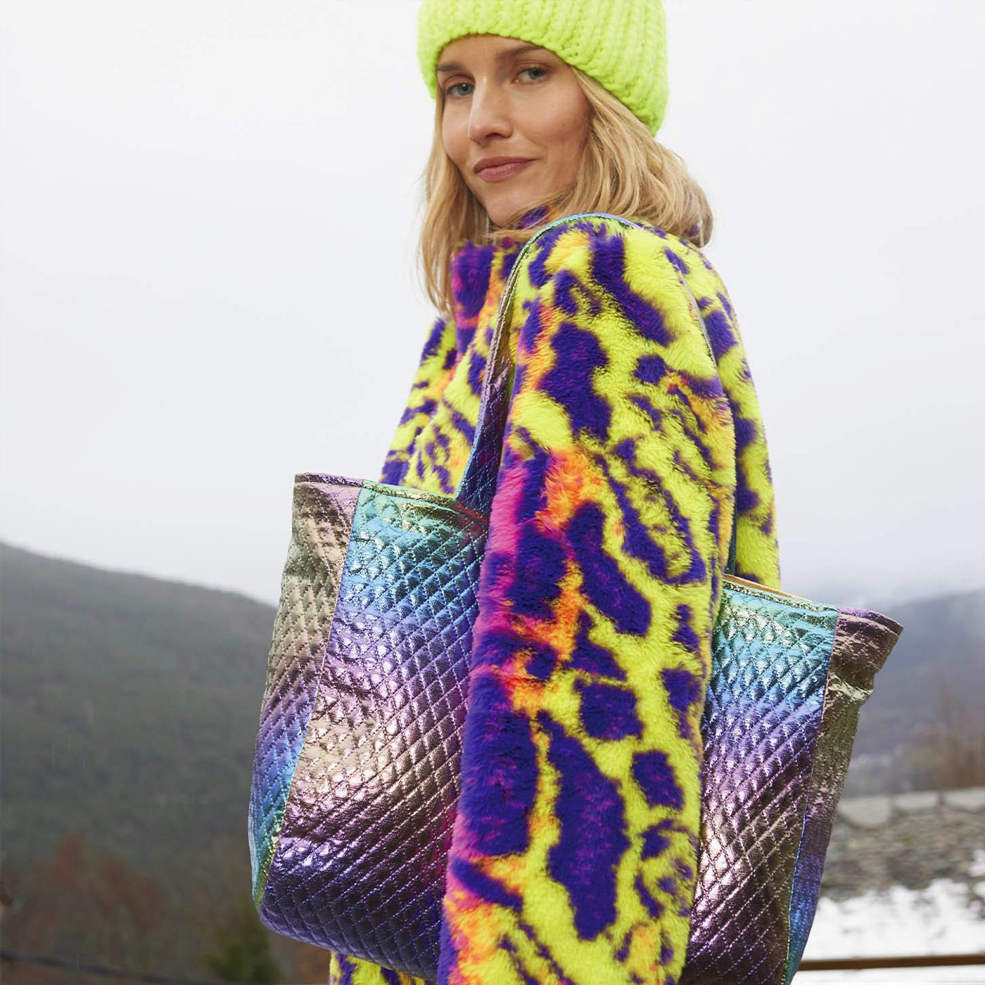 des accessoires flashy (pochettes, cols, capuches, sacs décalés).