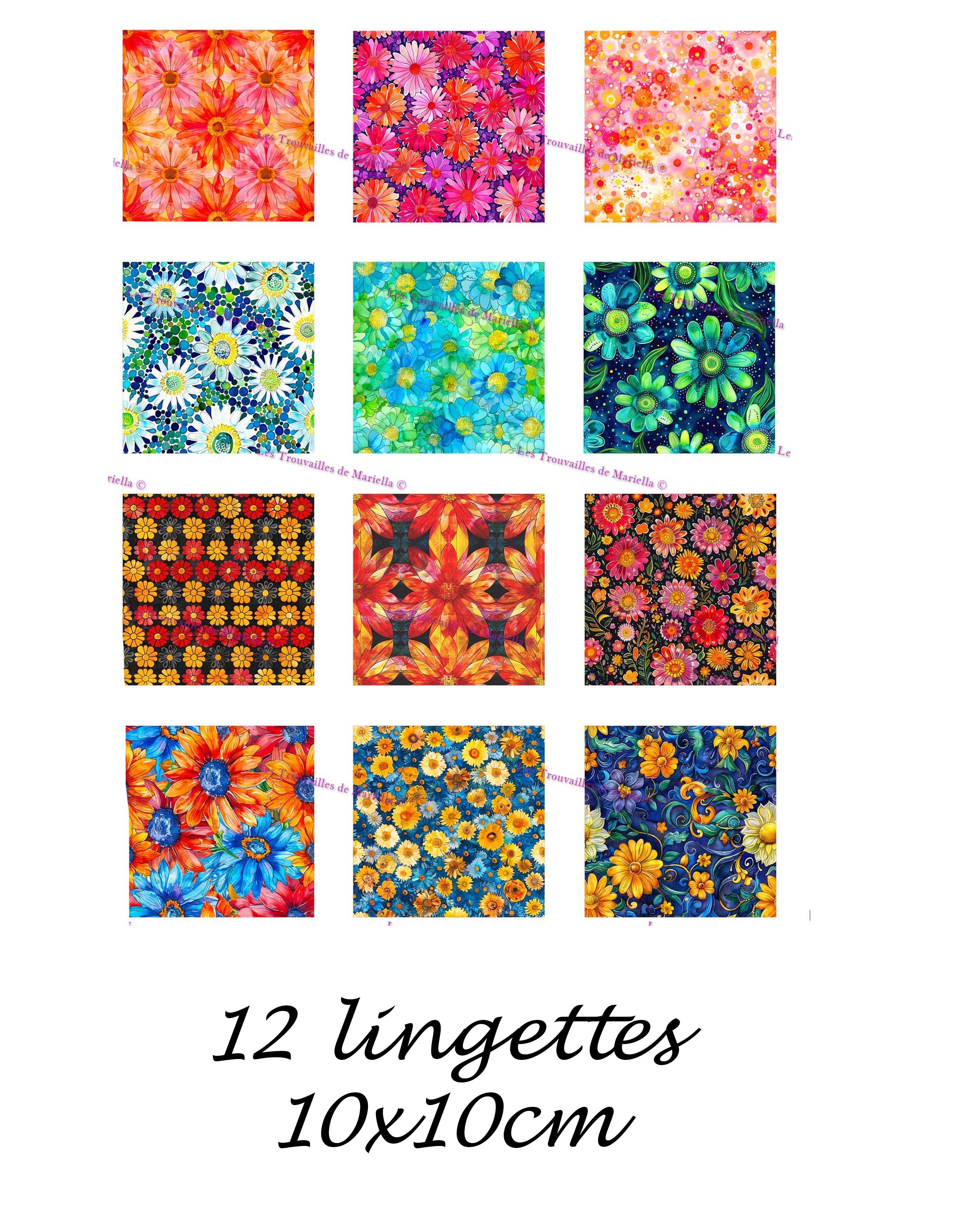 Panneau coton à lingettes lavables – 12 motifs 10 x 10 cm