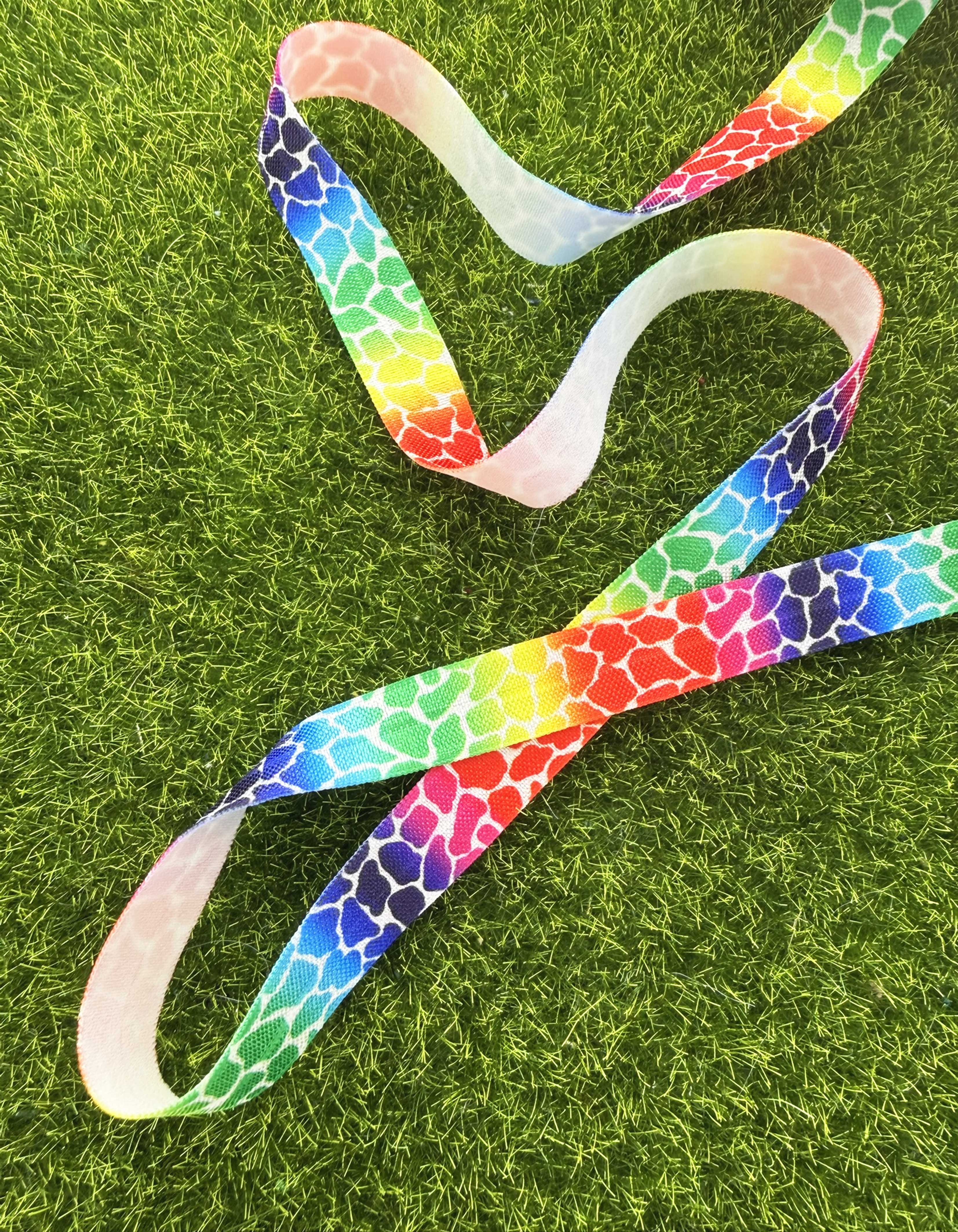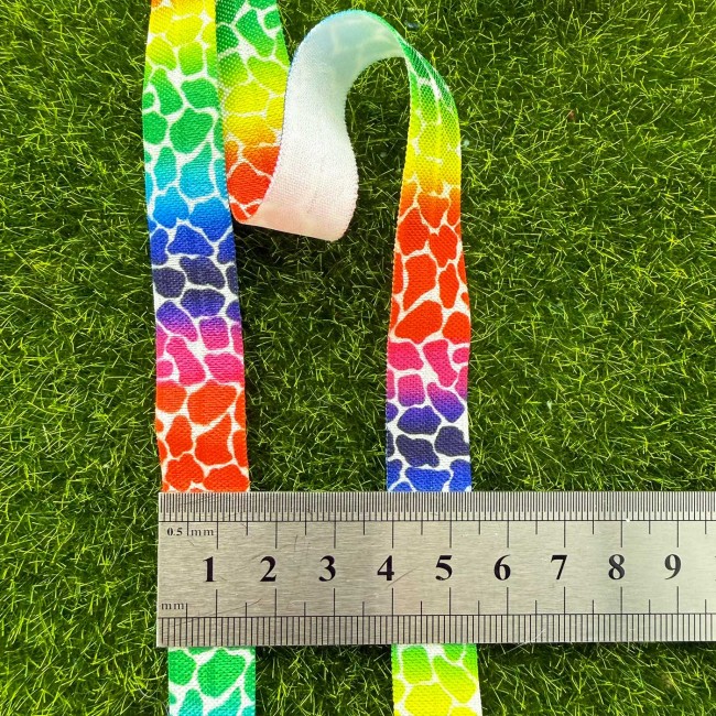 Elastique souple, plat et multicolore, dos blanc.
