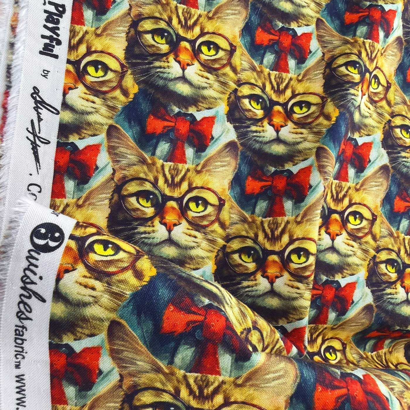 Un chat à lunettes, un nœud papillon rouge bien ajusté et une attitude très british : ce tissu Chat Gentleman ne passe pas inaperçu. Issu de la collection Purrfectly Playful de 3 Wishes Fabrics, il mêle illustration expressive et qualité textile, idéal pour des créations joyeuses, originales et soignées.