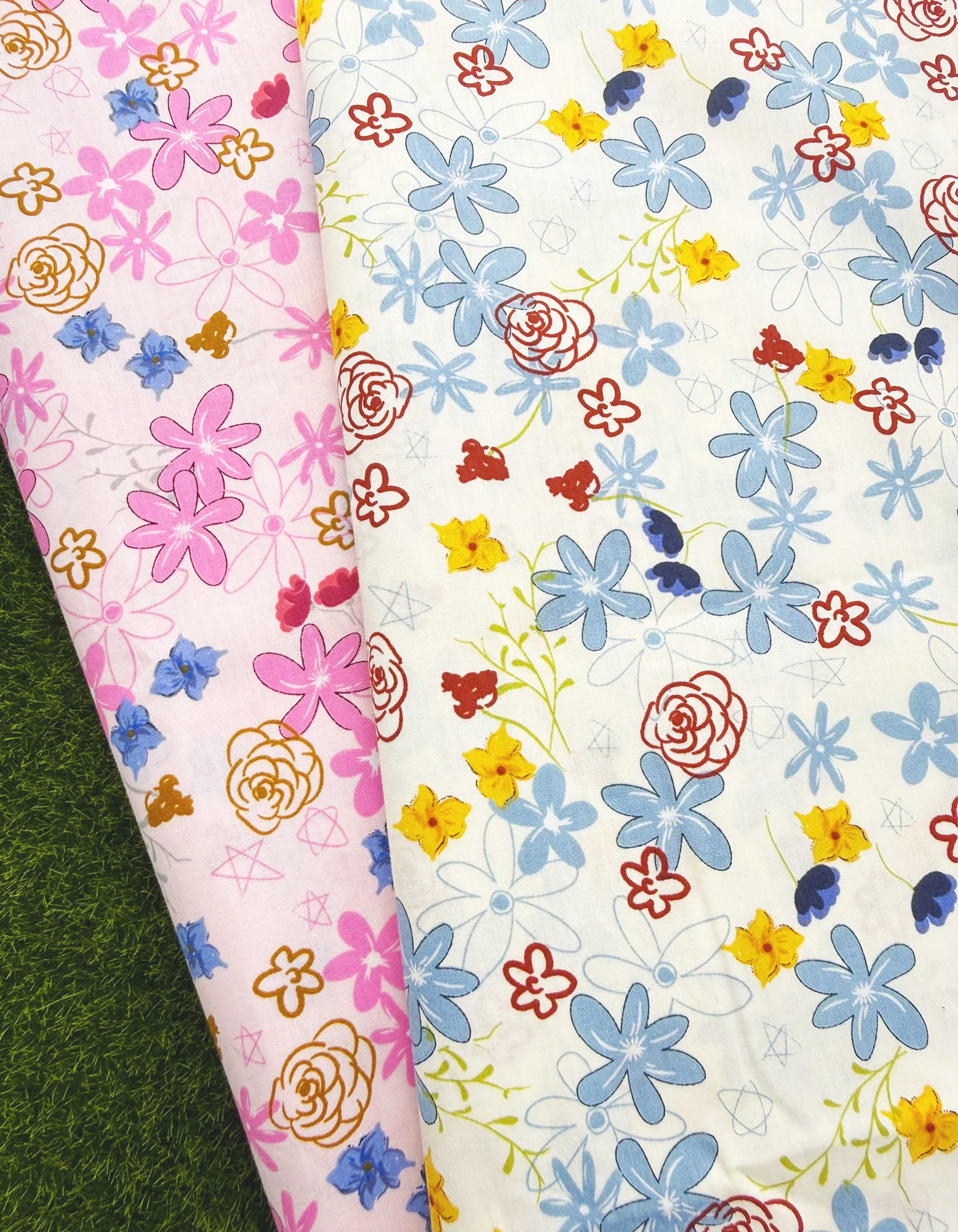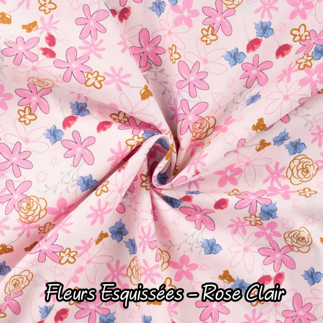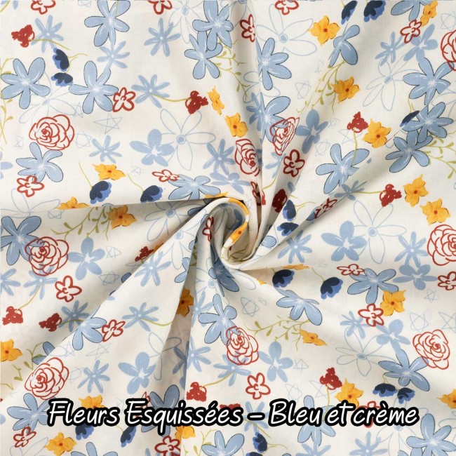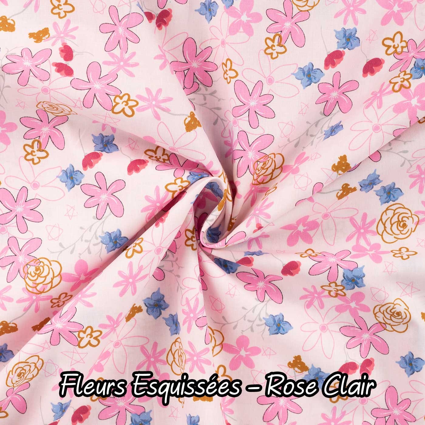 Ce duo de popelines joue sur un motif floral esquissé, aérien et délicat, décliné en deux ambiances douces :