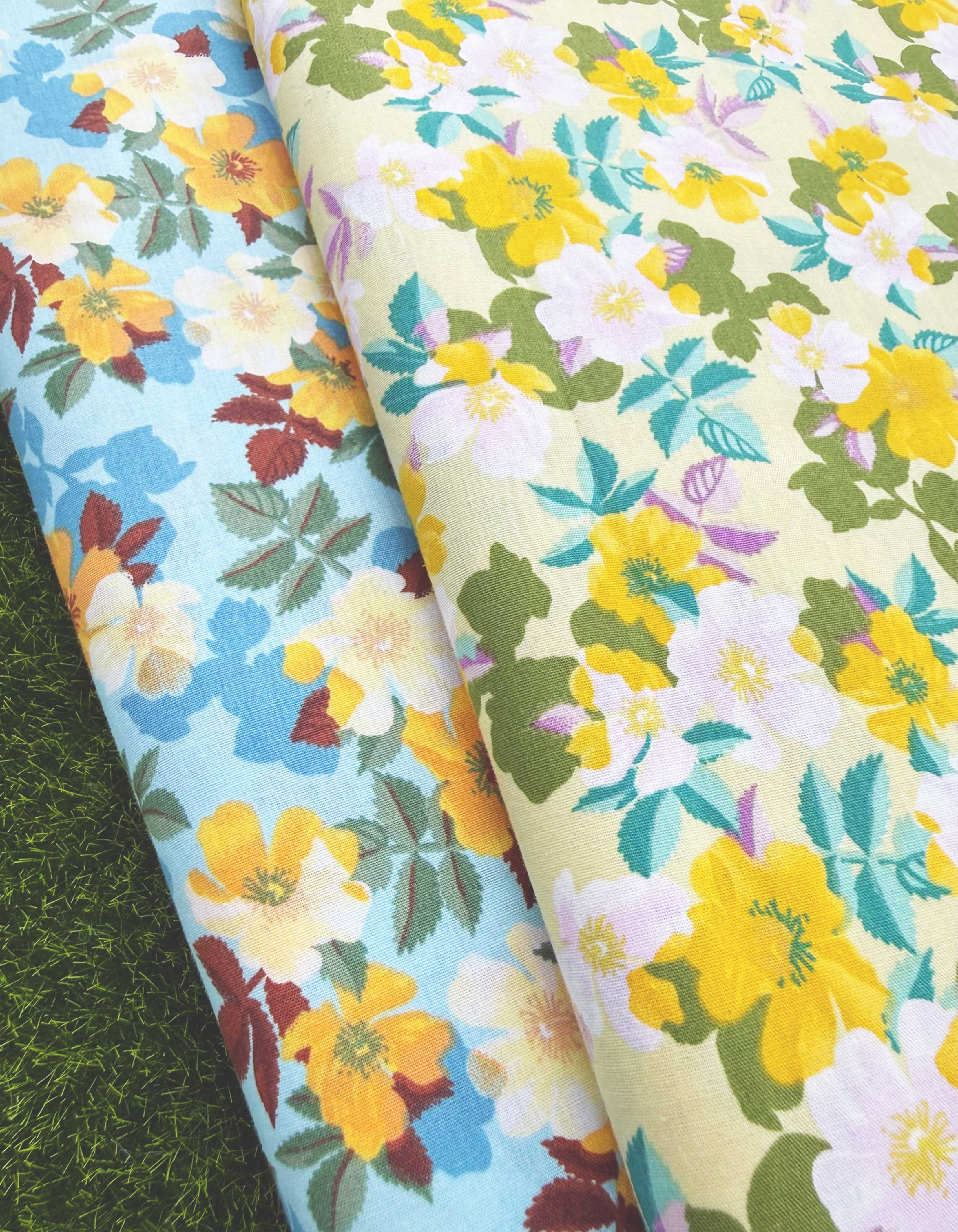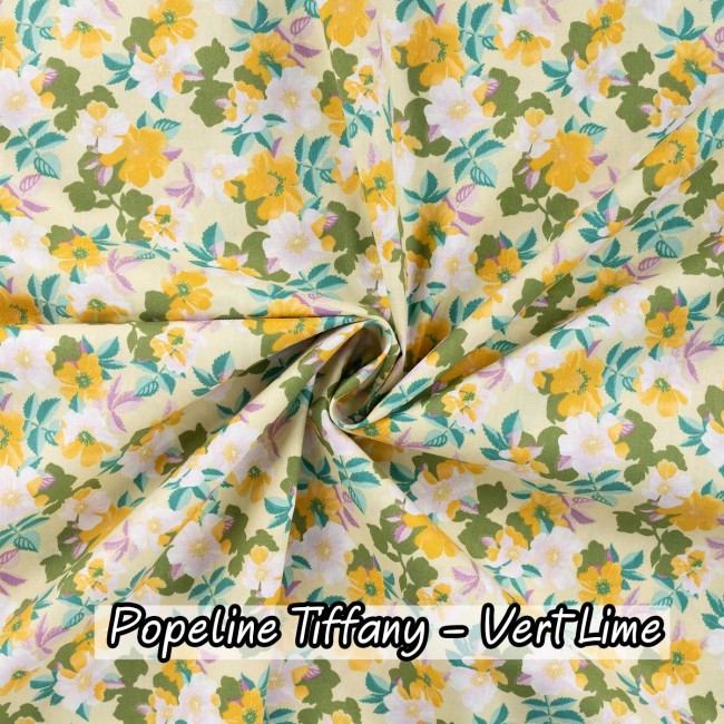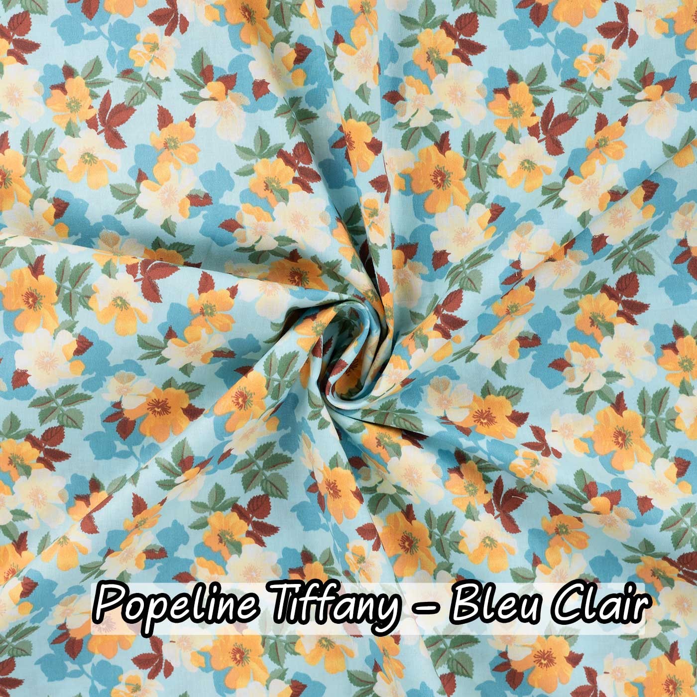 Ces popelines Tiffany partagent un motif fleuri délicat, décliné en bleu ciel et en vert lime.