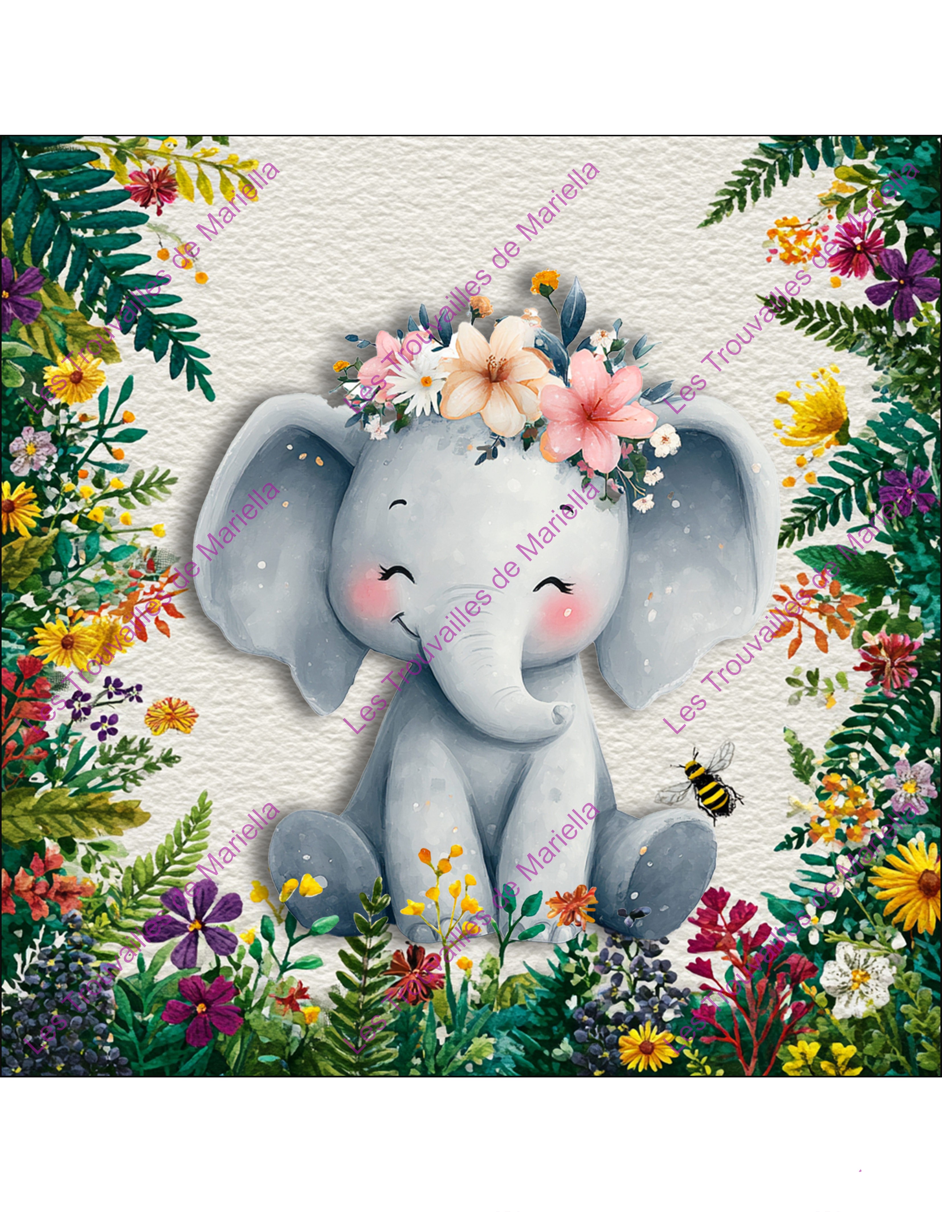 Le filigrane "Les Trouvailles de Mariella" visible sur les photos ne sera pas imprimé.