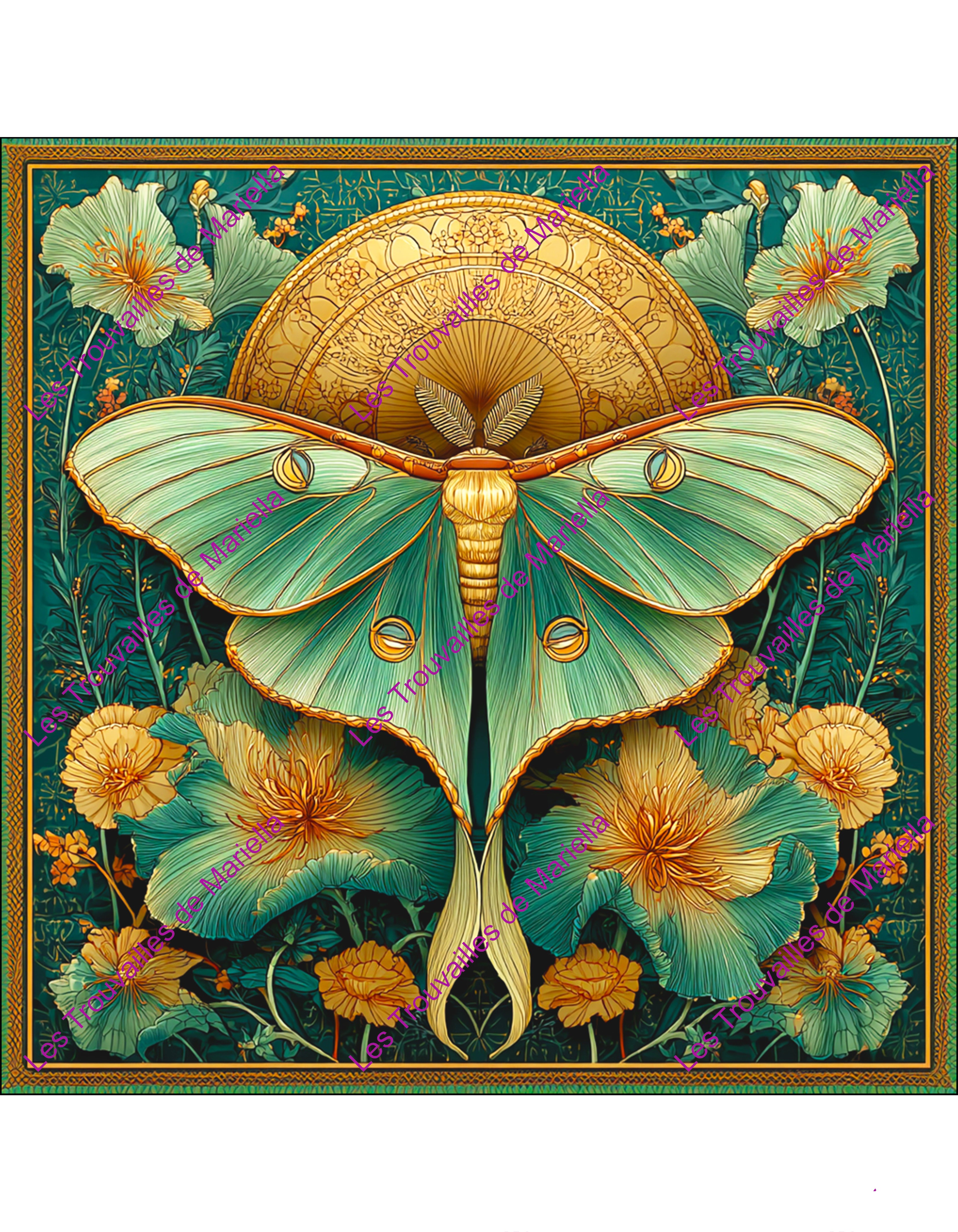 Le filigrane "Les Trouvailles de Mariella" visible sur les photos ne sera pas imprimé.