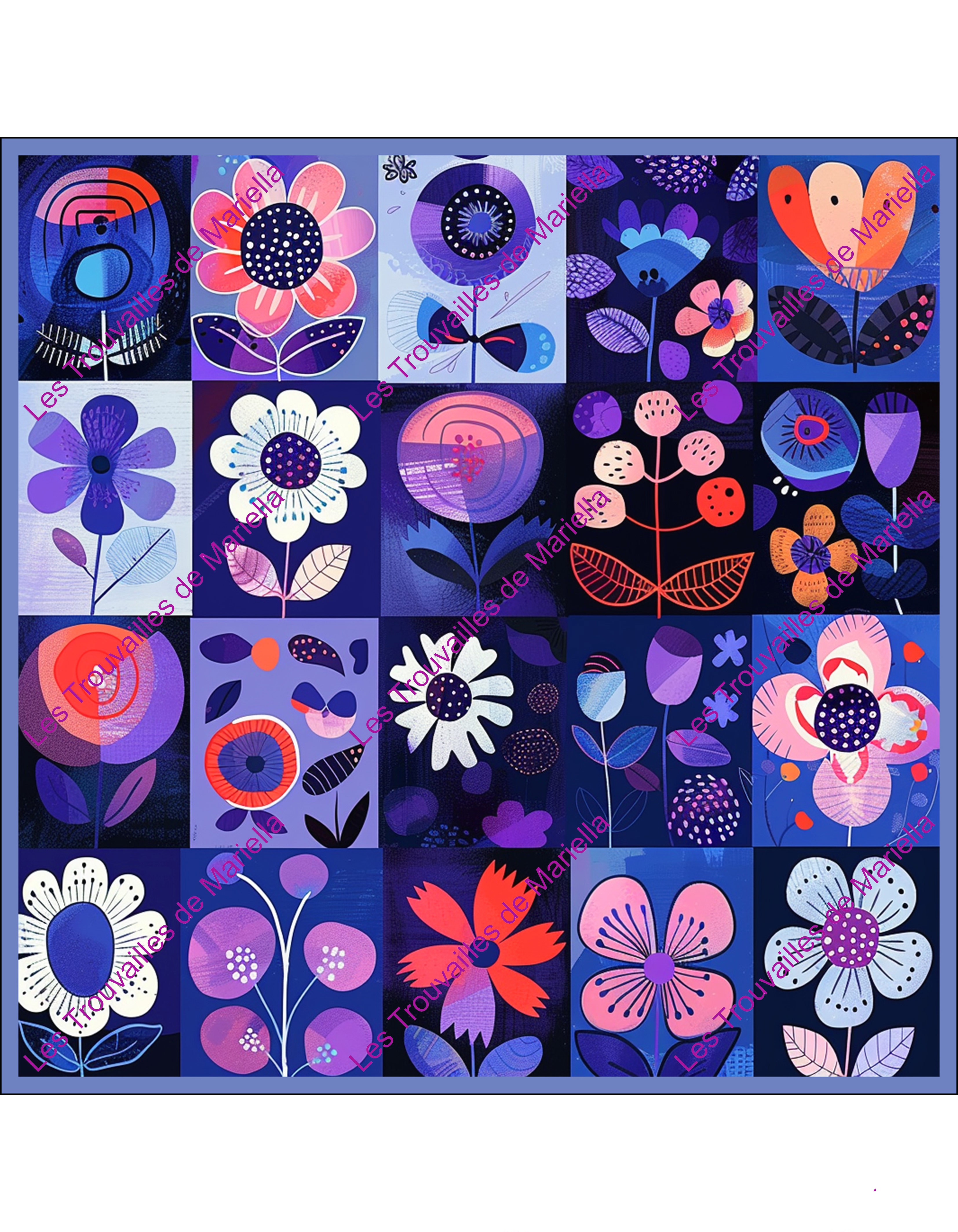 Le filigrane "Les Trouvailles de Mariella" visible sur les photos ne sera pas imprimé.