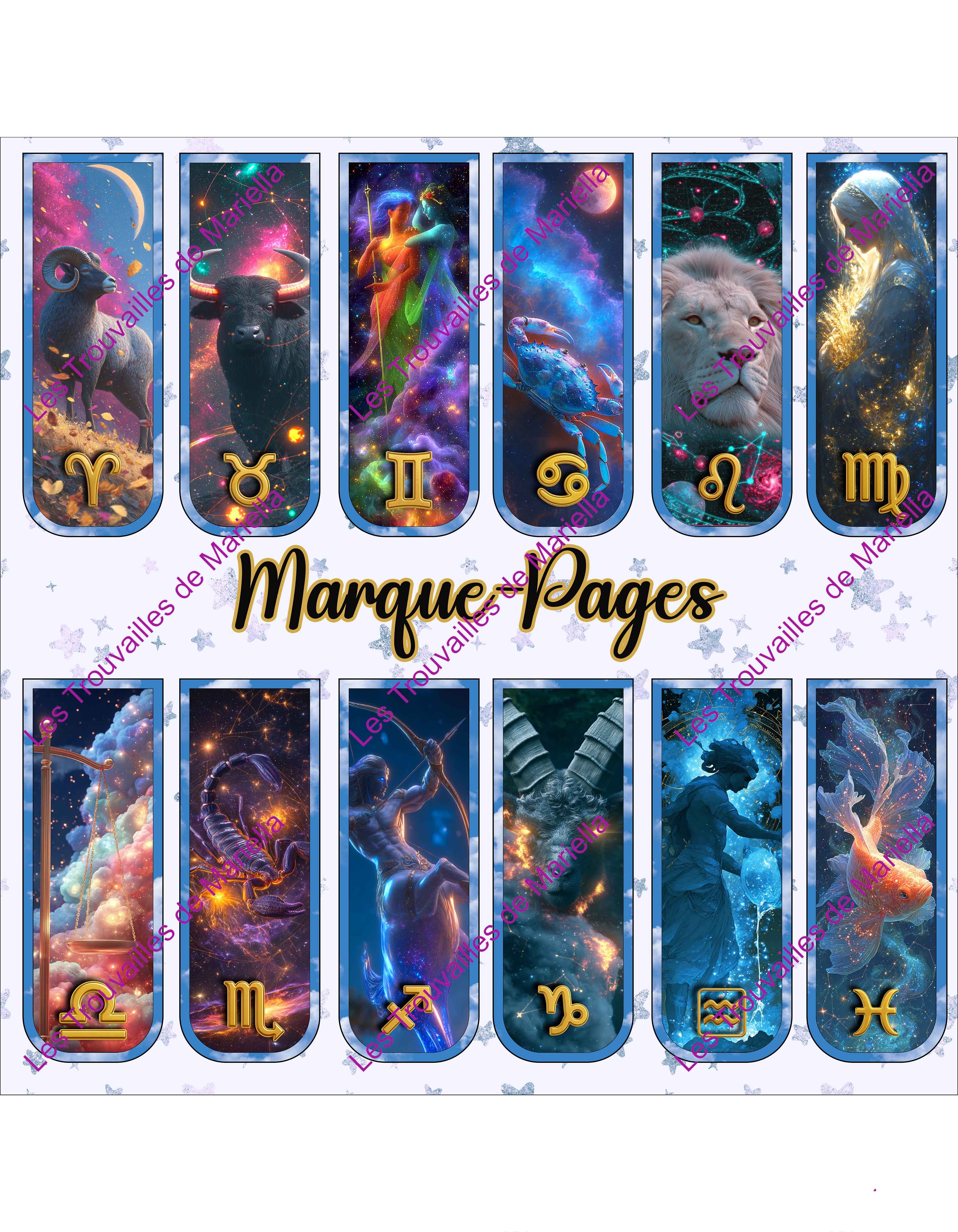Ce panneau contient 12 marque-pages d’environ 19 x 6 cm, prêts à être découpés, cousus et glissés dans un bon roman, un bullet journal ou un agenda.