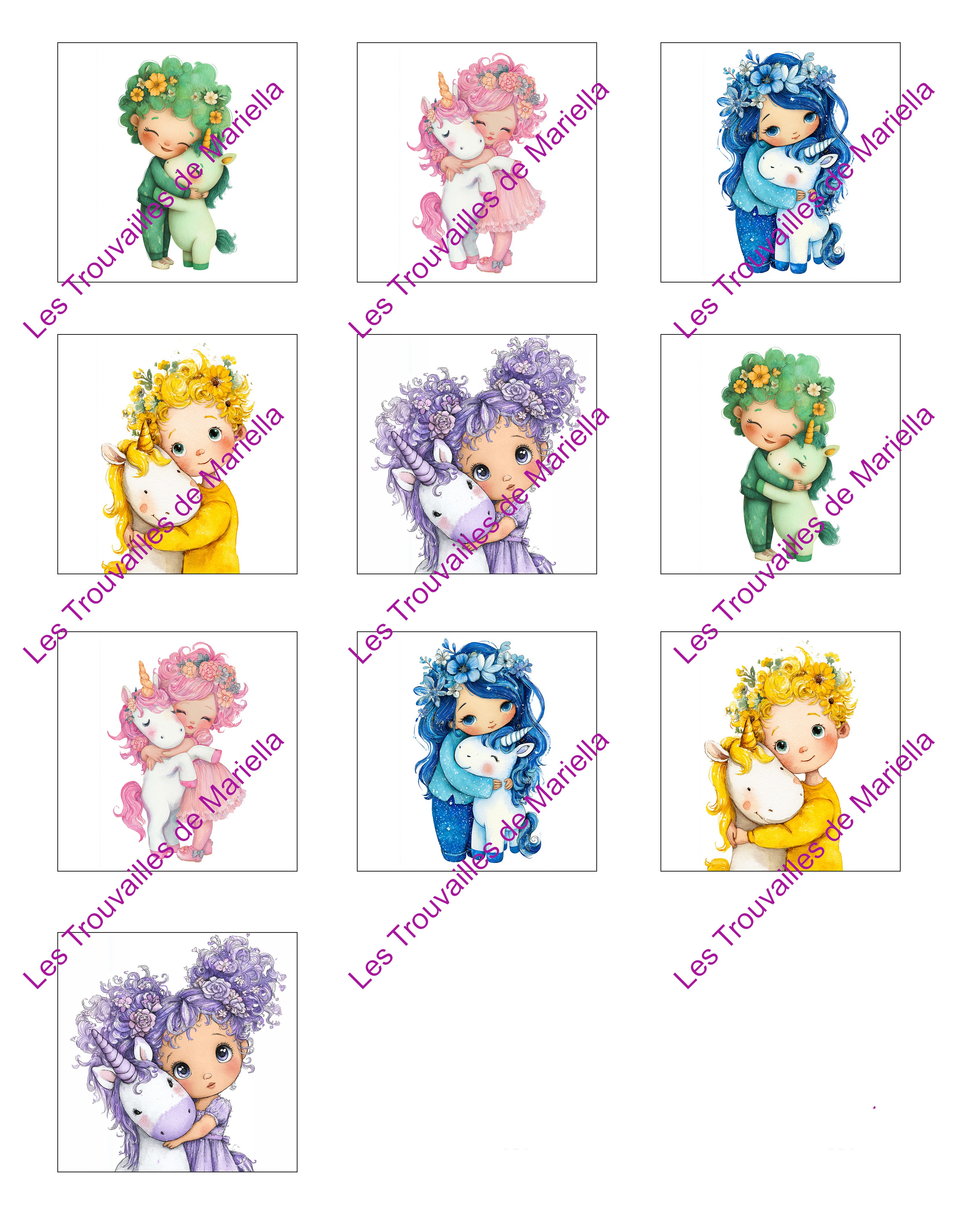 Le filigrane "Les Trouvailles de Mariella" visible sur les photos ne sera pas imprimé.