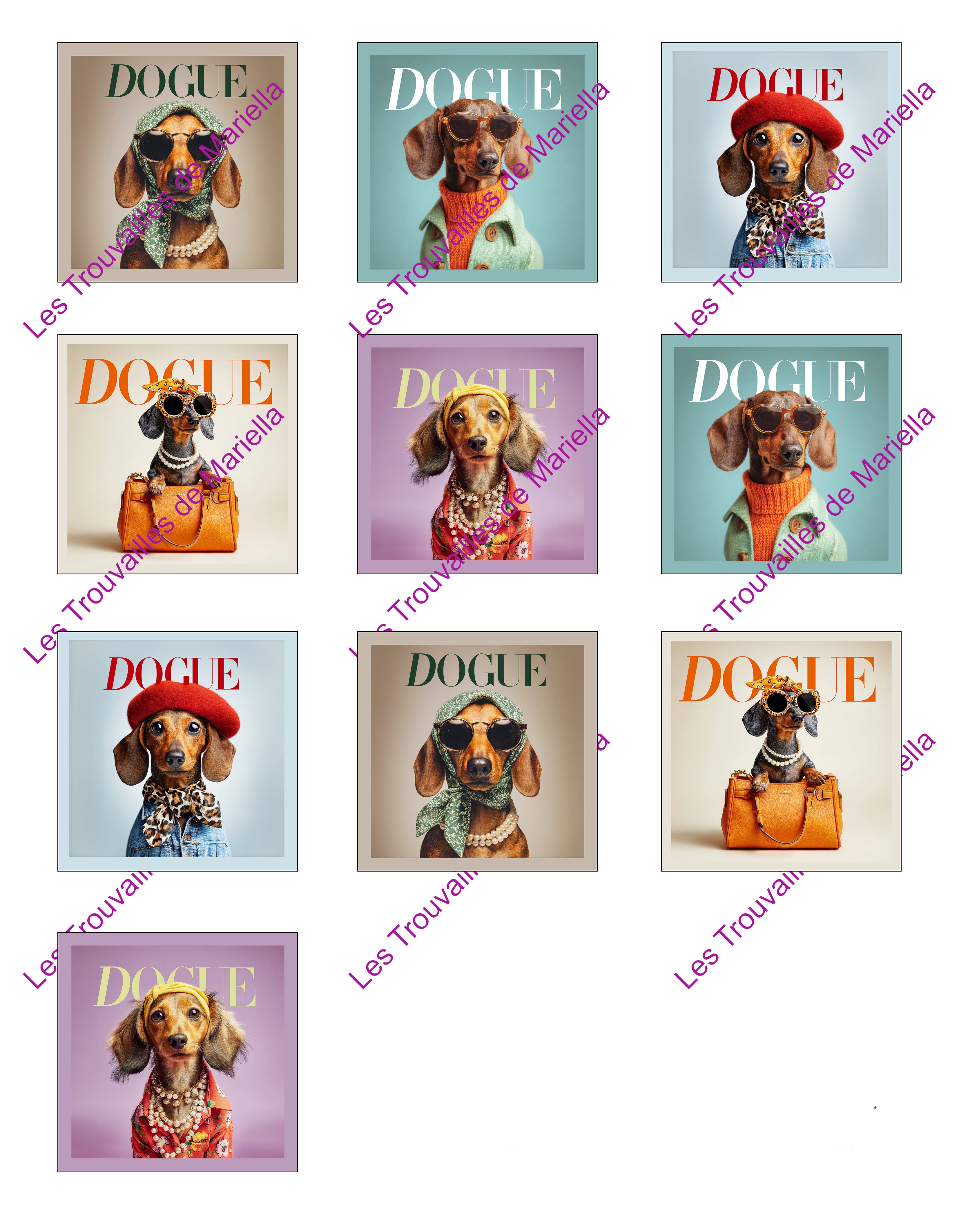 Le filigrane "Les Trouvailles de Mariella" visible sur les photos ne sera pas imprimé.
