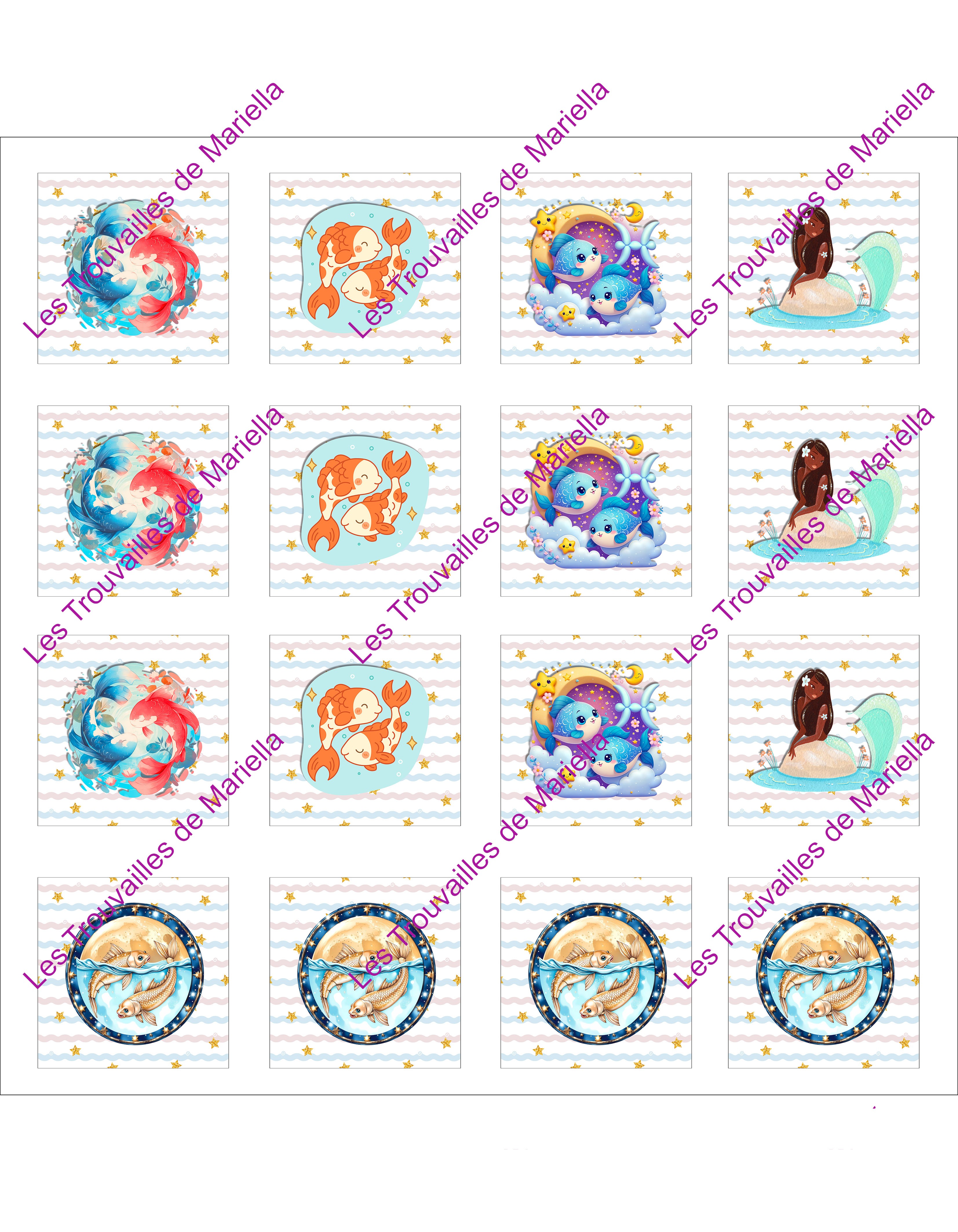 Le filigrane "Les Trouvailles de Mariella" visible sur les photos ne sera pas imprimé.