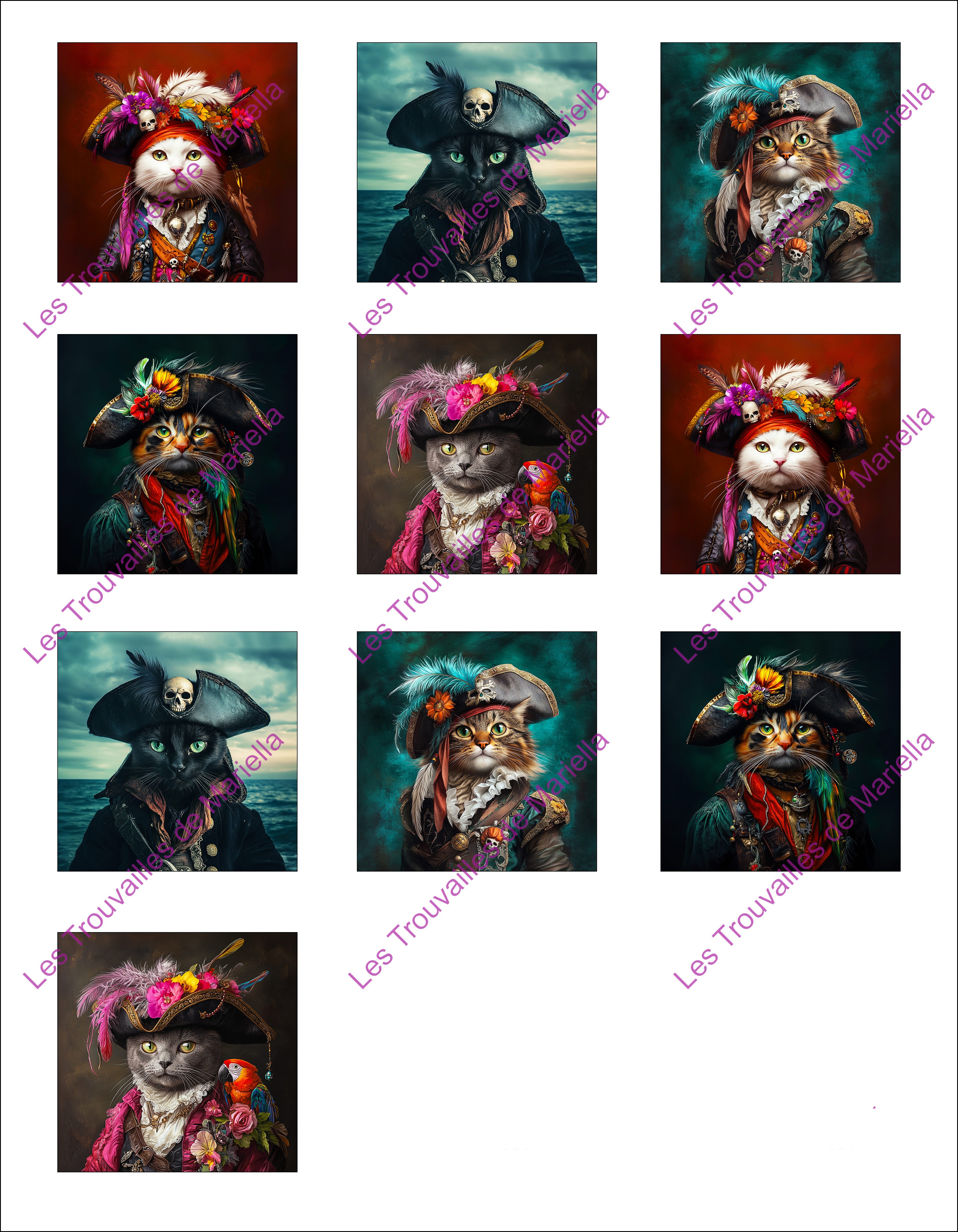 Le filigrane "Les Trouvailles de Mariella" visible sur les photos ne sera pas imprimé.