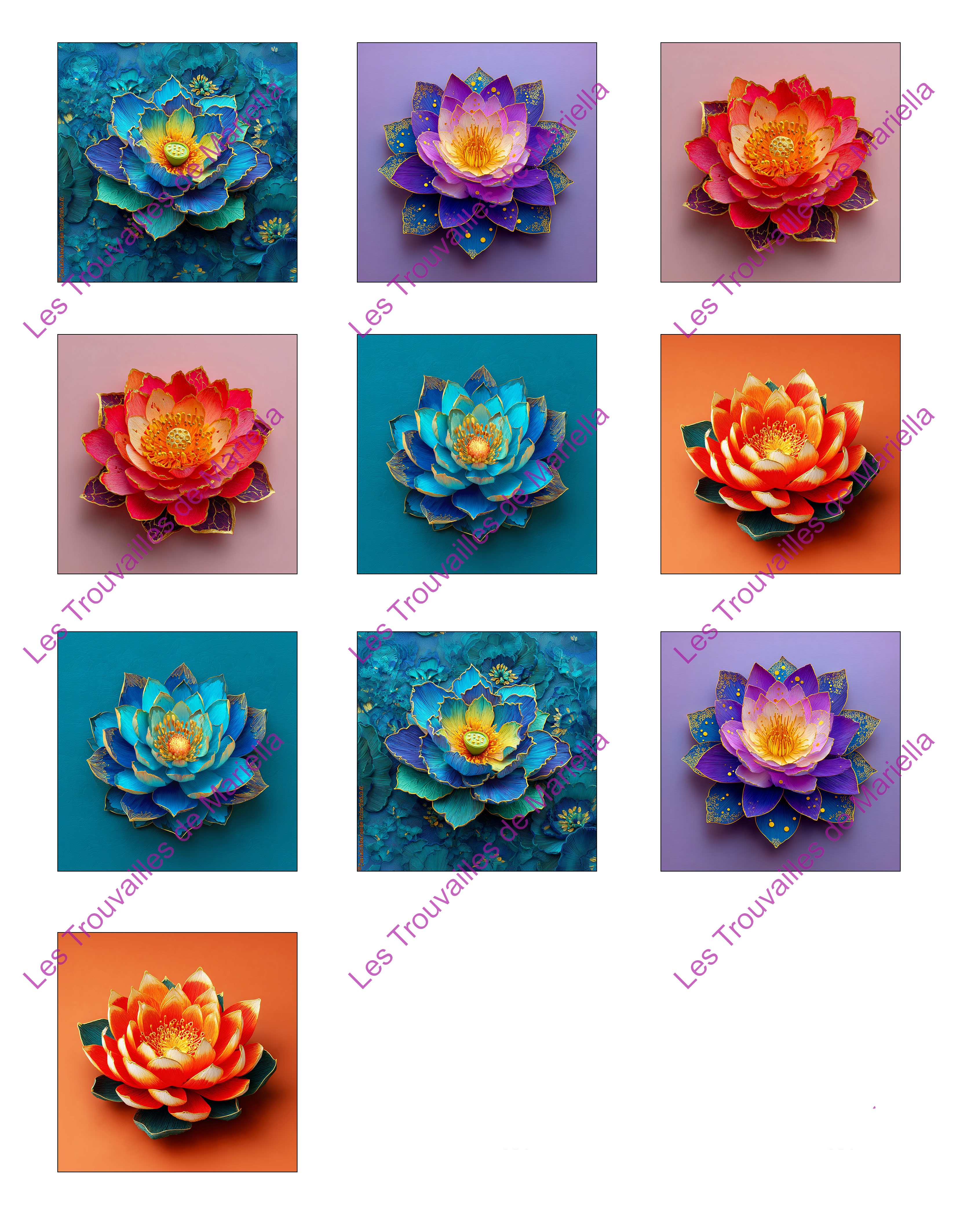 Le filigrane "Les Trouvailles de Mariella" visible sur les photos ne sera pas imprimé.