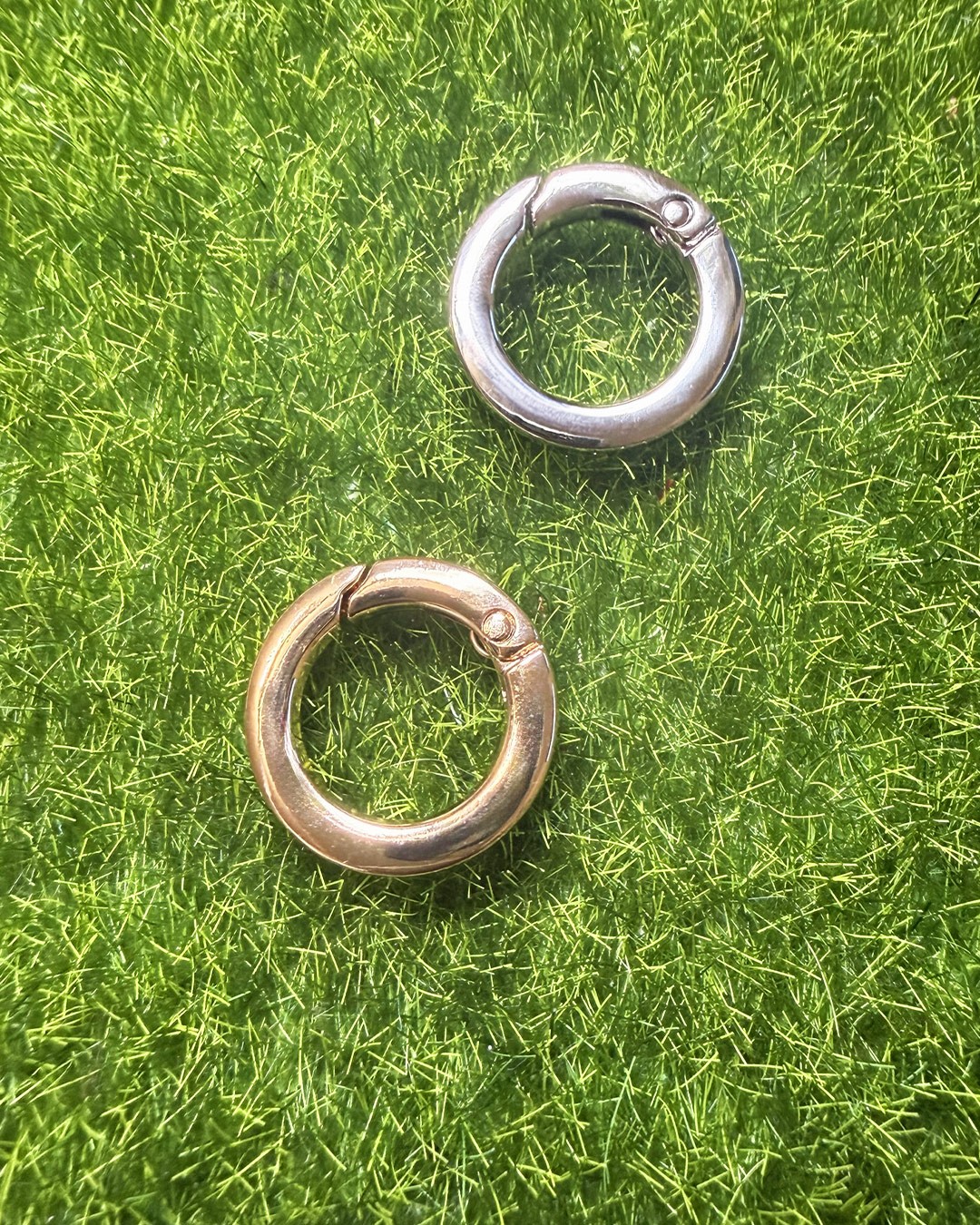 Anneaux ouvrants en métal avec fermeture à ressort intégrée, parfaits pour réaliser des porte-clés, breloques ou accessoires de sac.