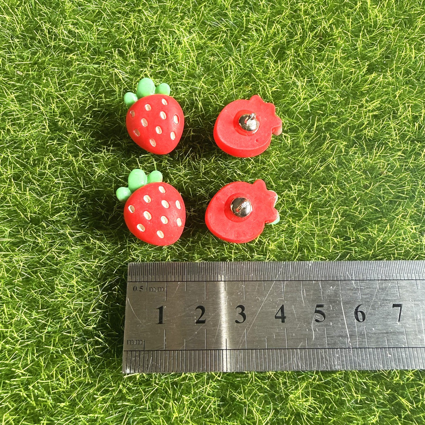 Ces boutons fantaisie en forme de fraise apportent une touche ludique et colorée à vos créations couture.