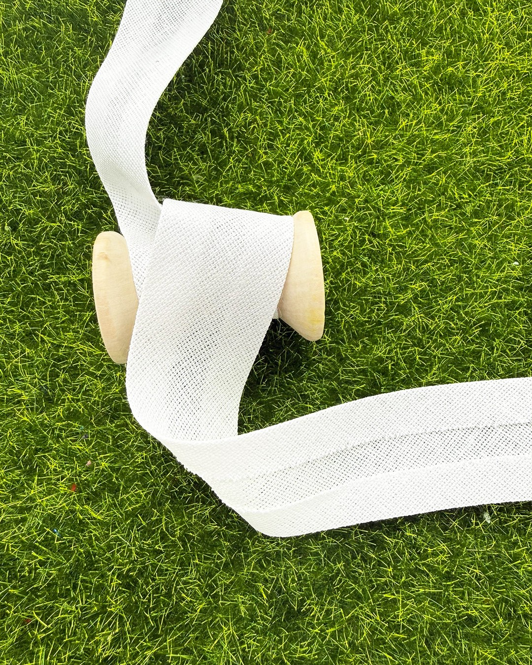 Biais en coton plié de 28 mm de large, prêt à coudre.
