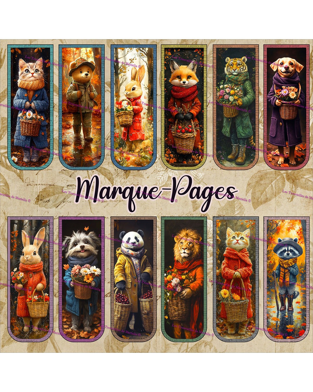 Panneau Coton Marque-Pages Animaux d'automne