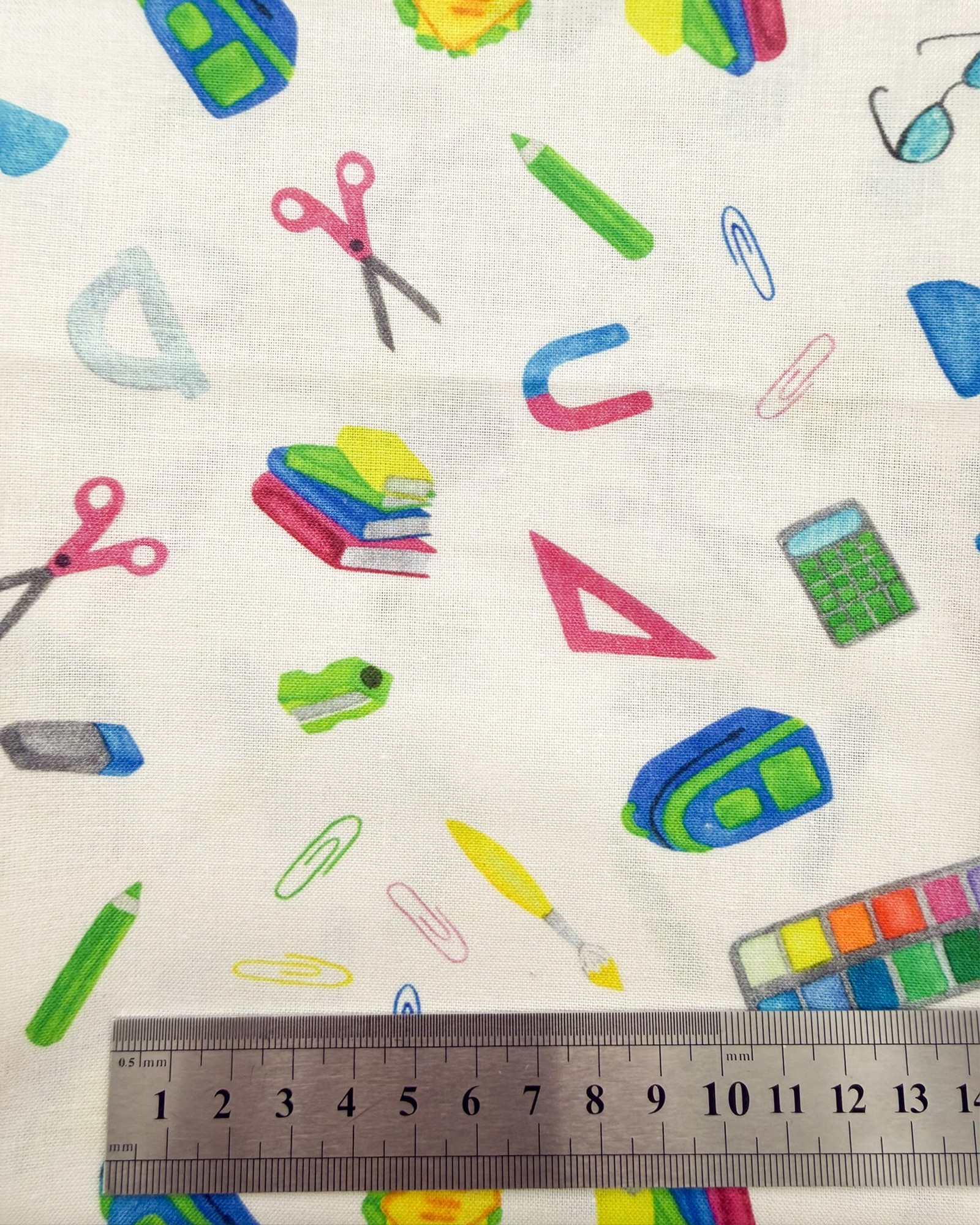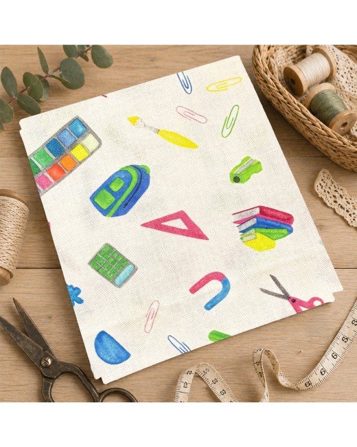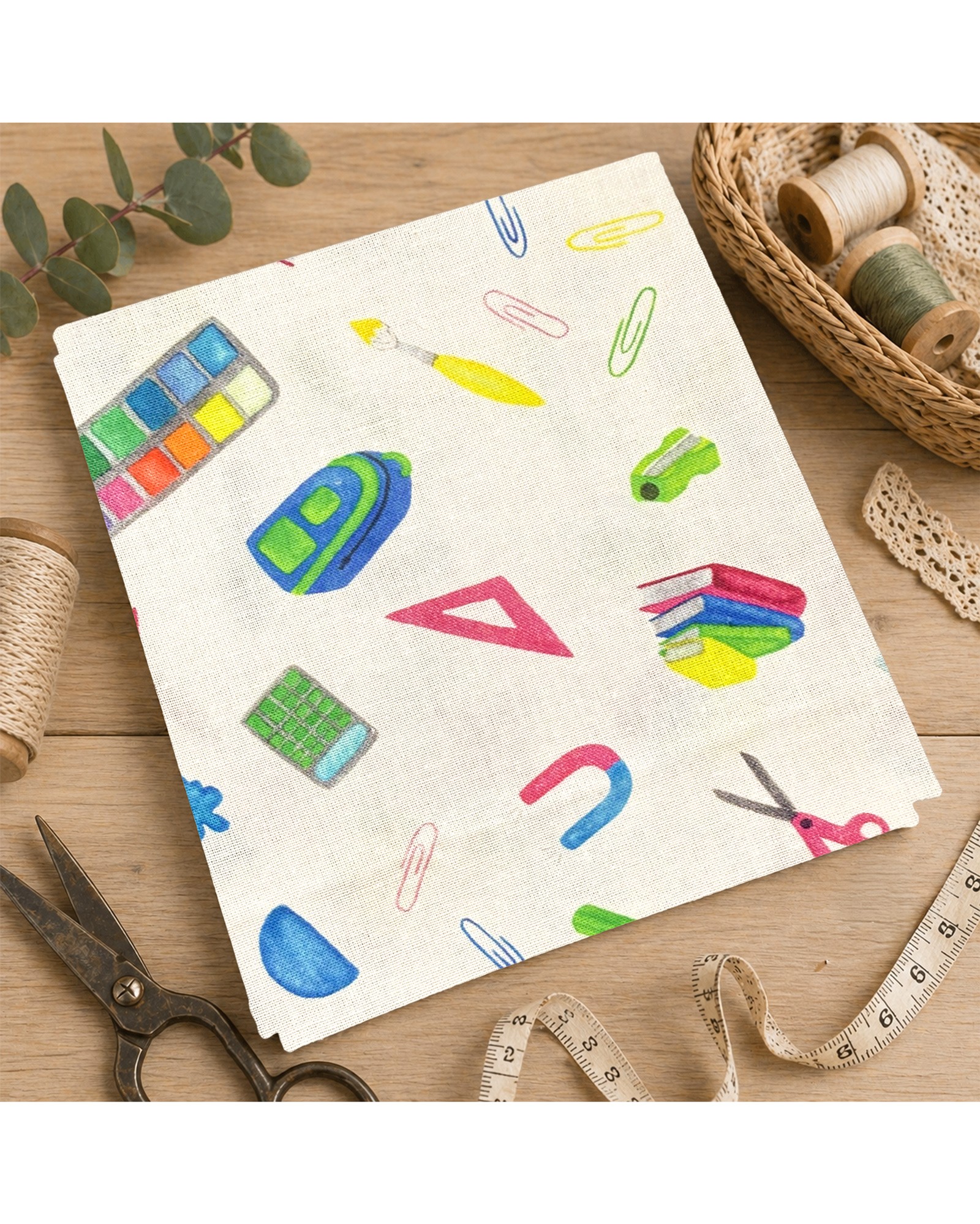 Ciseaux, crayons, palettes de peinture, cartables… Un joyeux bazar scolaire imprimé sur fond blanc. Parfait pour les sacs à goûter, les étuis ou les projets destinés aux écoliers ou à leurs maîtres et maîtresses.