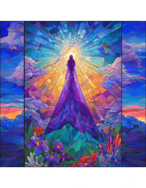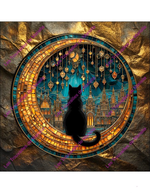 X976_ Chat lunaire blanc en vitrail (précommande)