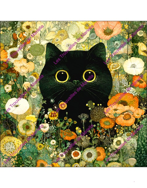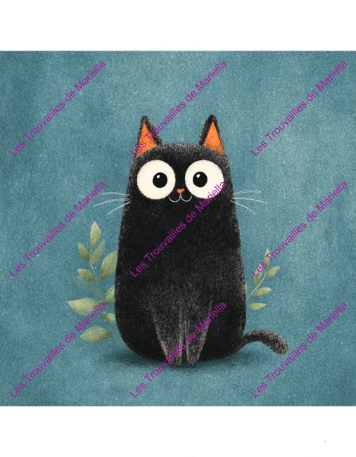 Toile bâchette Cachou – chats noirs sur fond naturel